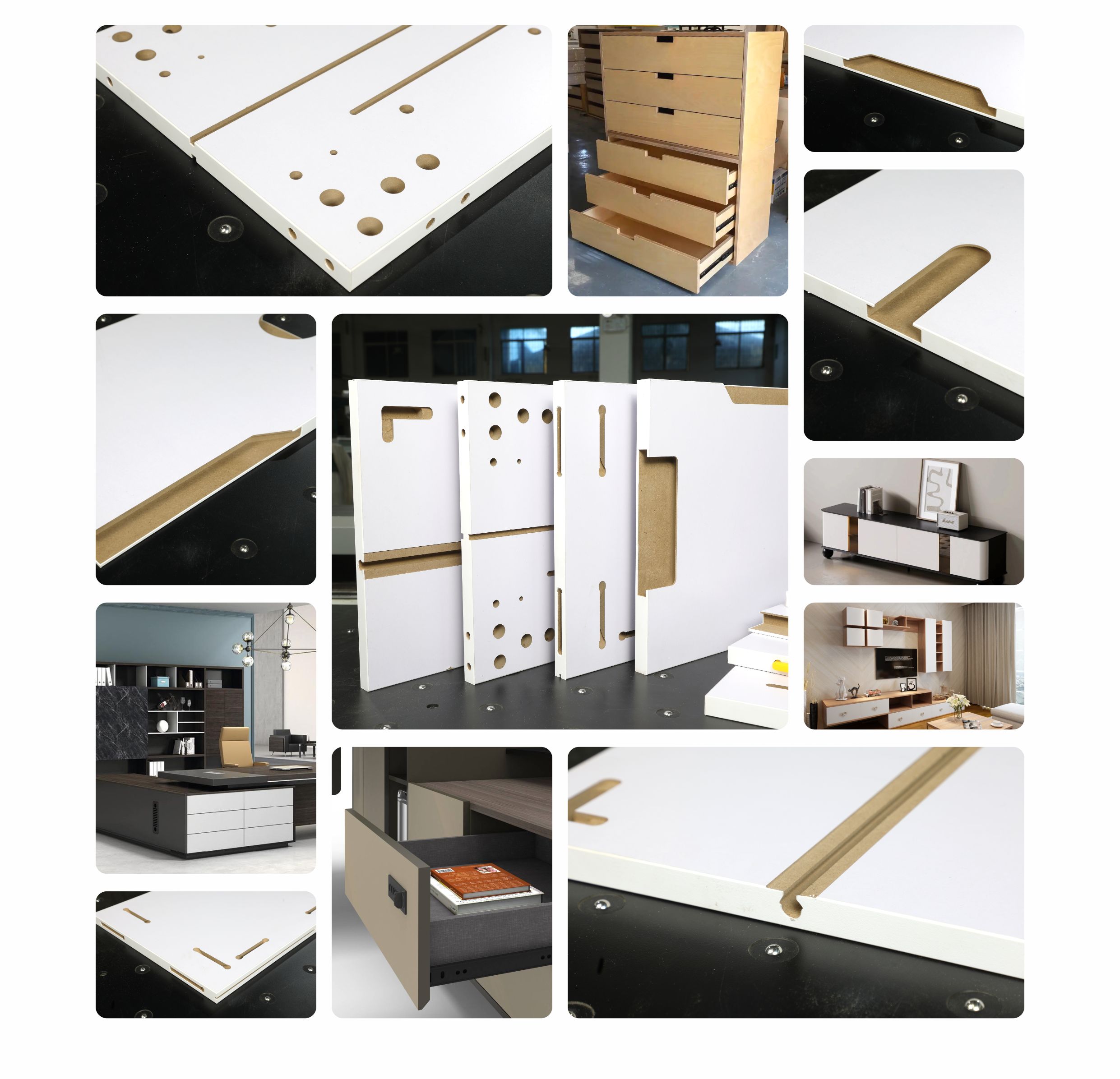 1.2+1 driling mode, linked processing, can achieve six sided punching, groove drawing, various handle free processes, etc.