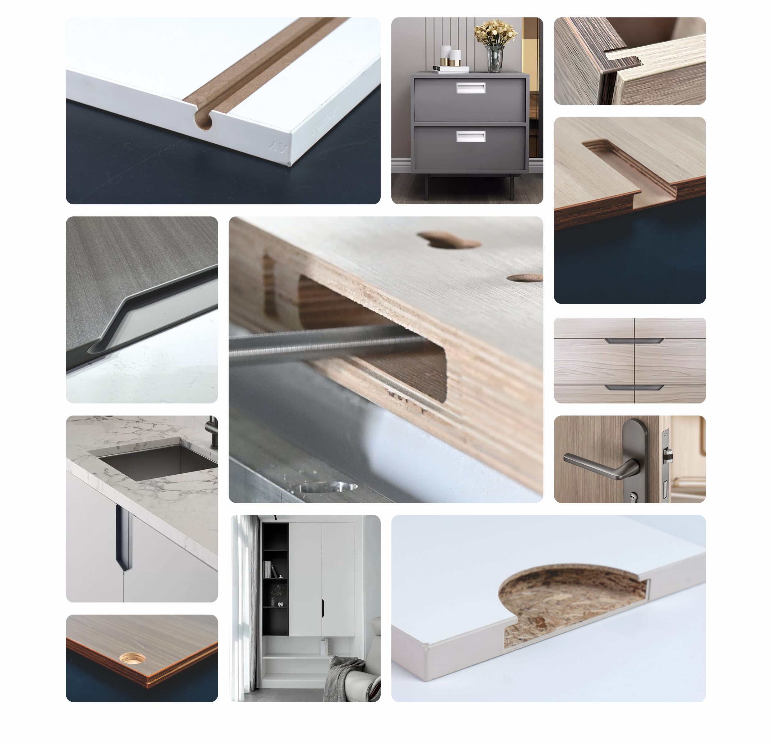 Satisfy processes such as door lock holes, hinge holes, begonia angles, 45 degree beveled edges, mortise and tenon joints,