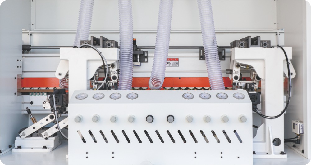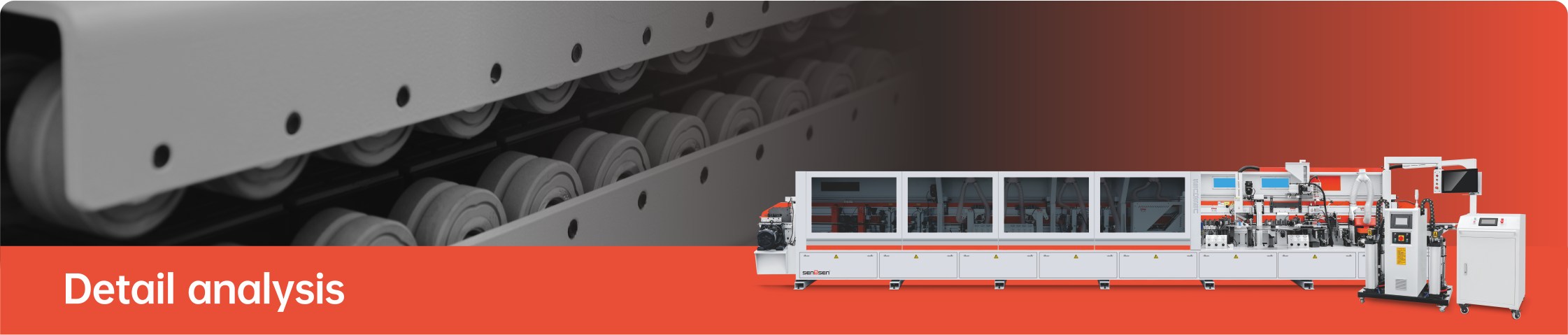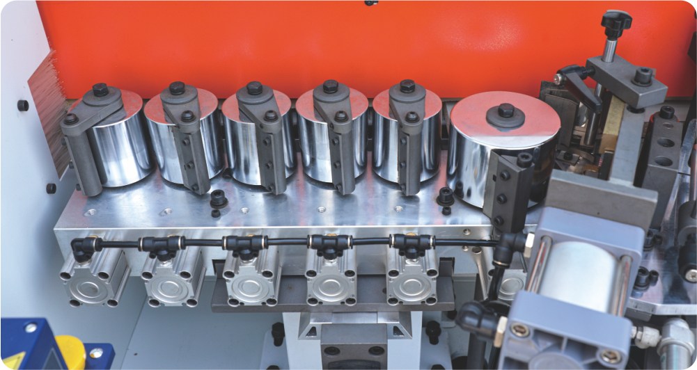 Six steel wheels prevent the edge tape from floating up and down and deviating. Multiple points are closely pressed to ensure a stronger bond between the edge banding tape and the board.