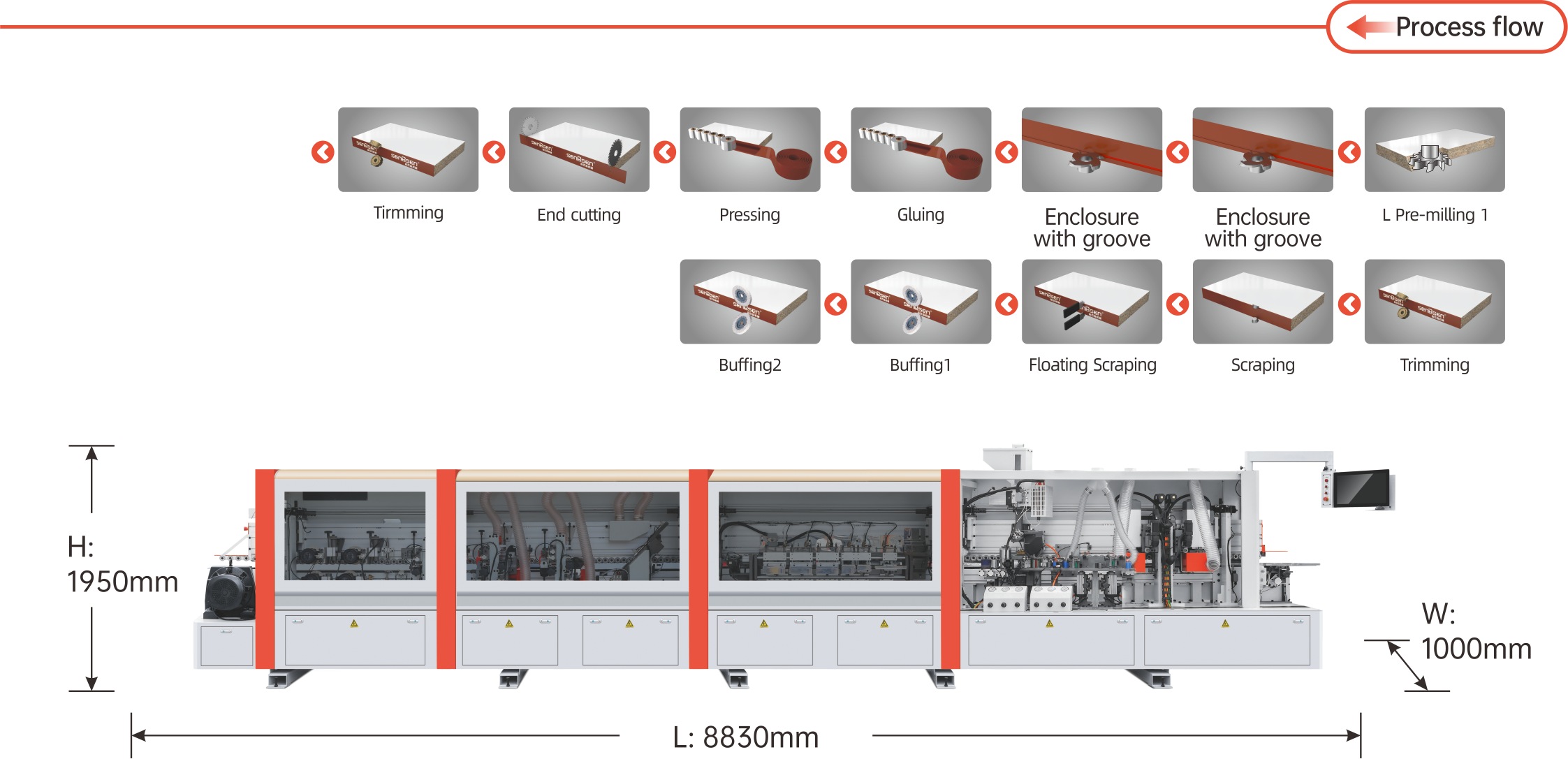 It can seal sub doors, mother doors, T-shaped edges, straight edges, etc,integrating multiple processes to ensure high-quality and aestheticaly pleasing edge sealing of door panels.