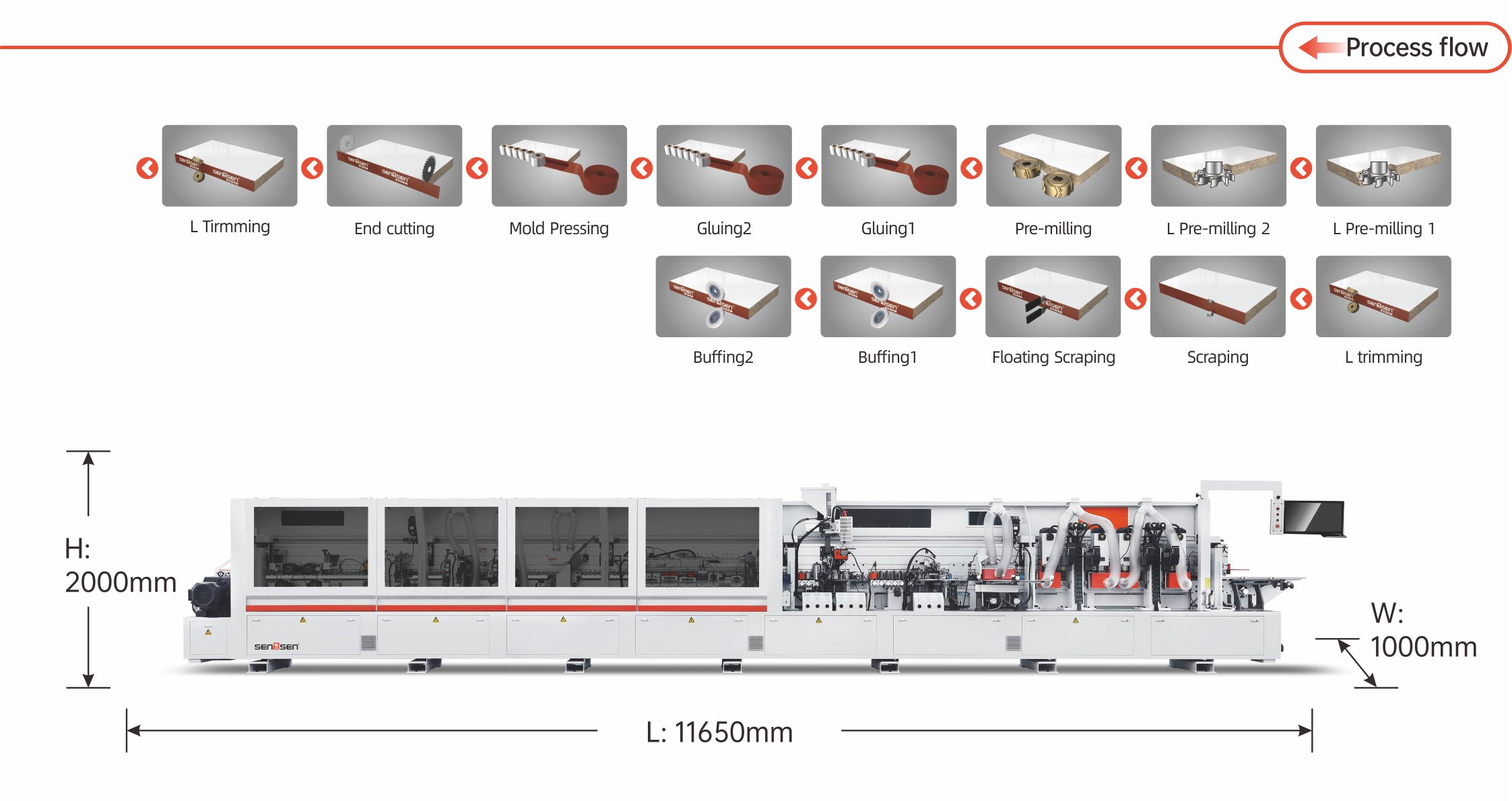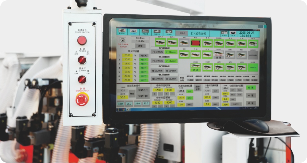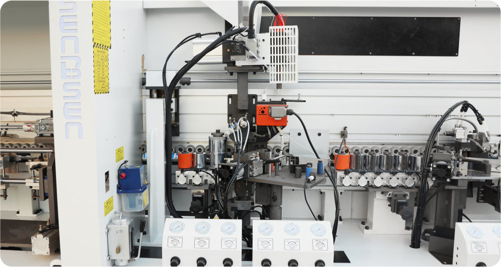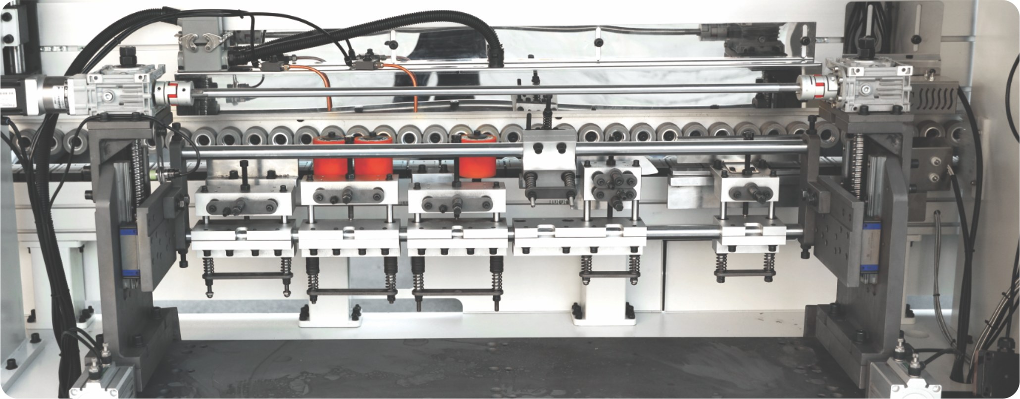 Multiple independent pressing modules, according to the servo forming miling cuter process, can be adjusted with one click inkage to achieve precise pressing of difterent edge structures and shapes of the mother doo, ensuring even and firm adheslon between the edge banding and the workpiece edge.